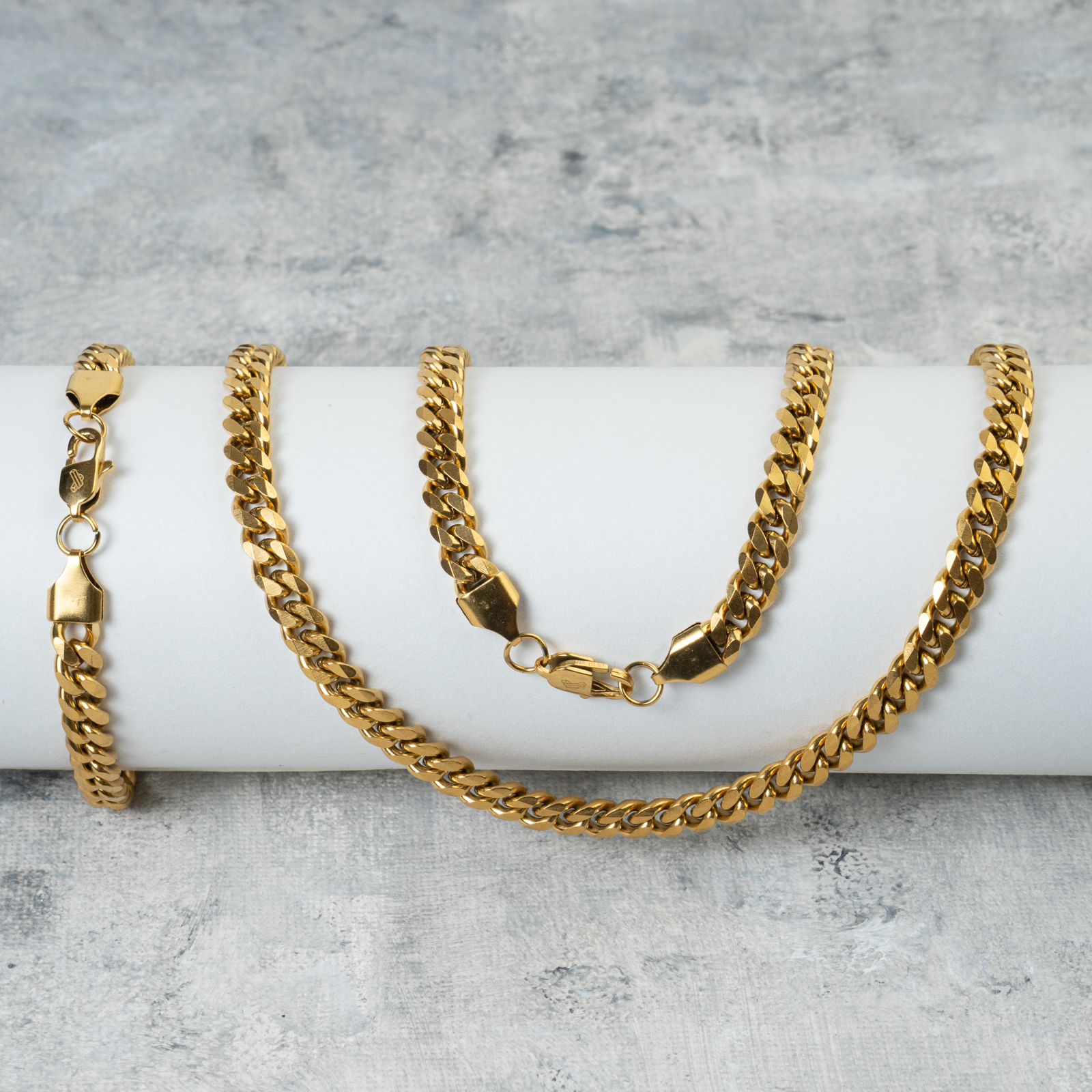 - Pulsera: Diseño cubano de 6mm y 20cm, que complementa a la perfección la cadena para una apariencia completa.